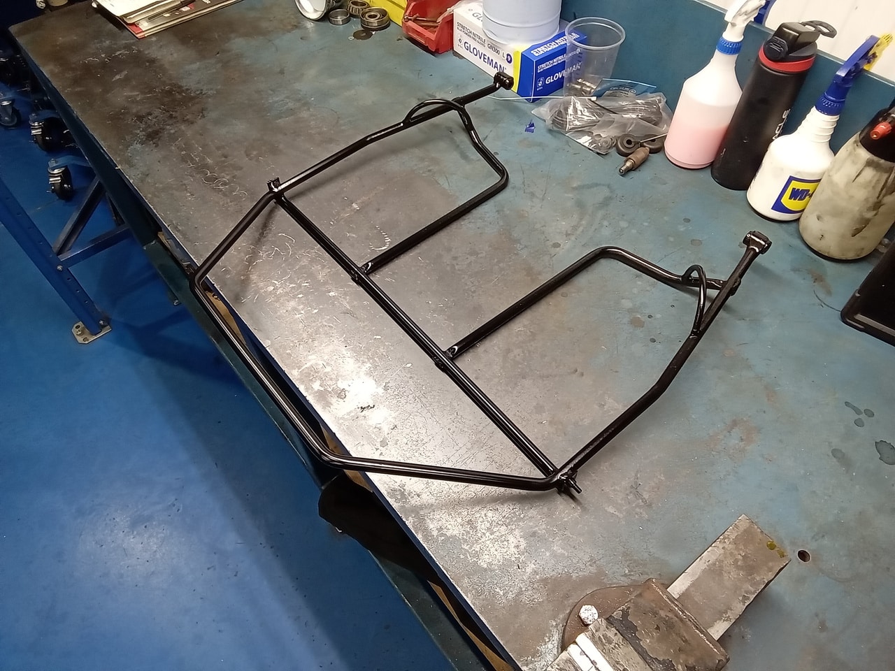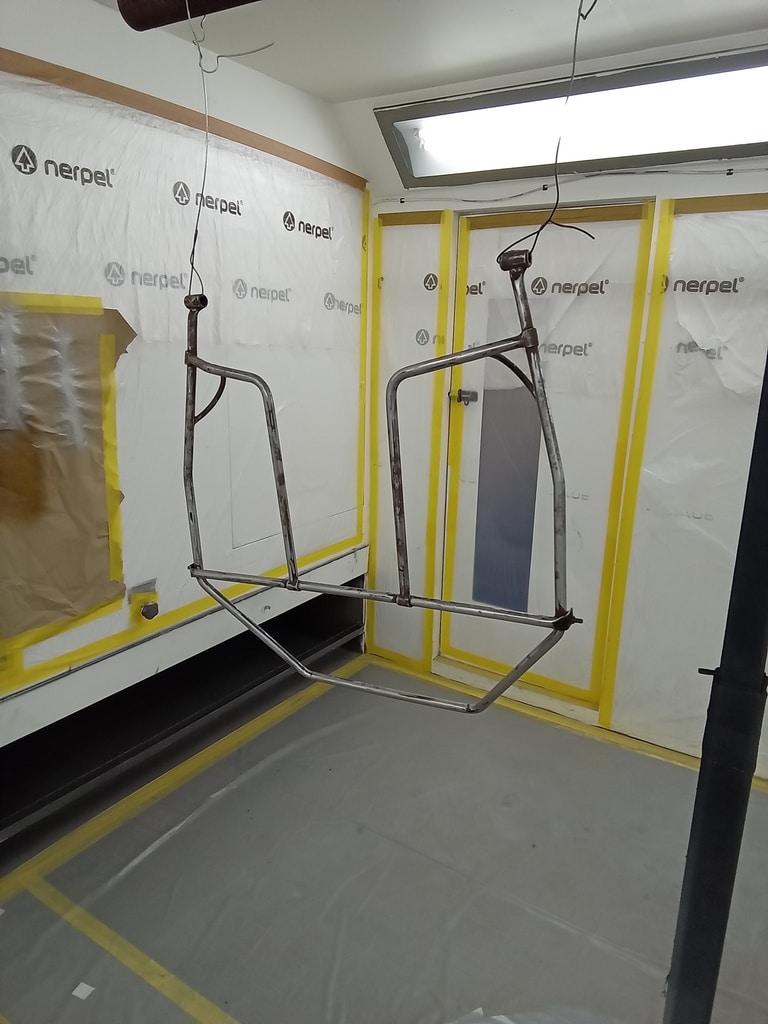 The spare wheel carrier of the twin-turbo GT car has been cleaned up and painted by the Bridge Classic Cars paint and body team. Our paint shop manager Chris spent a while getting the piece prepped and cleaned before headed into our in-house paint booth and shot in black.