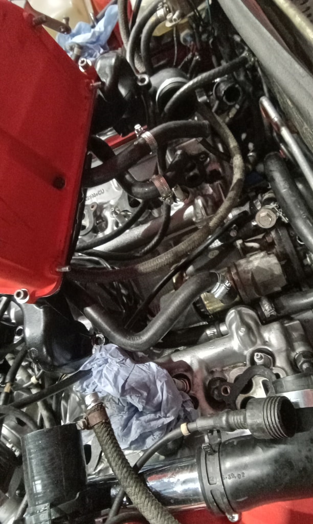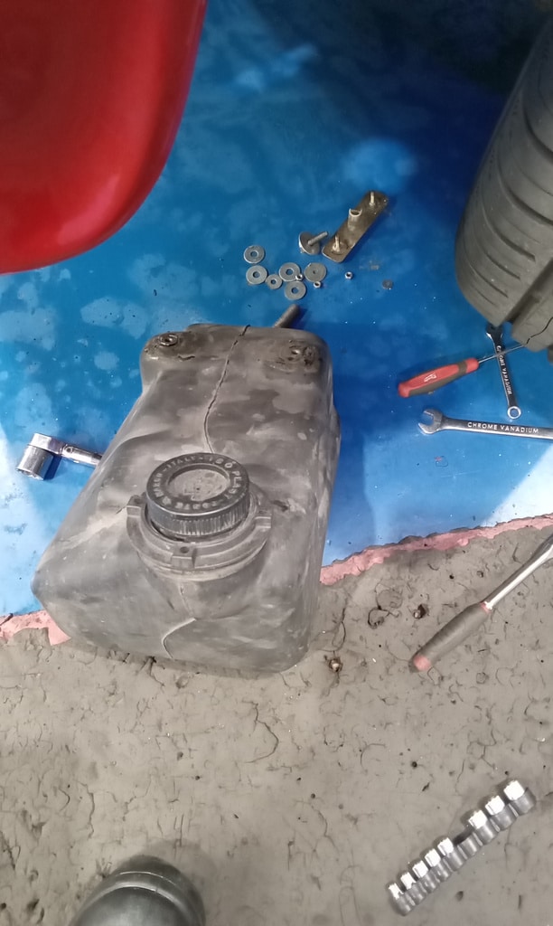 Vacuume test water system for leaks, PTFE tape drain bung on radiator as it was leaking, remove air box and hoses diagnosing another leak from a missing jubilee clip and fit clip, fill car with coolant, clean up the points contacts and thr rotor arm and contacts in the distributor cap, 10 litres of fuel in the car, check if fuel is gettng to the carburettor.