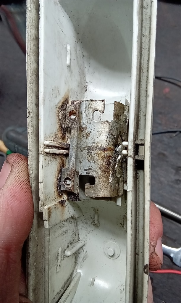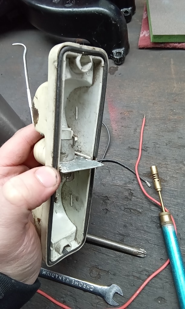 ‘Remove all bolts holding on the front bumper and remove the side indicators and trim, wiggle front bumper forward to gain access to bolts holding in the side light and indicator unit, remove side light and indicator unit, dismantle the side light and indicator unit, find that is want getting continuity because of corrosion on the terminals, clean up all three terminals on the wire wheel, repaired broken earth terminal by using solder to rejoin the two snapped pieces, rebuild light unit, check for continuity and find there was none, ot being able to repair the unit so a new one was ordered.