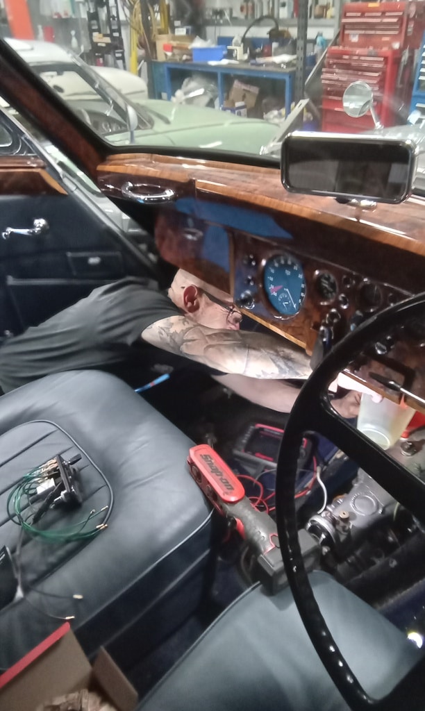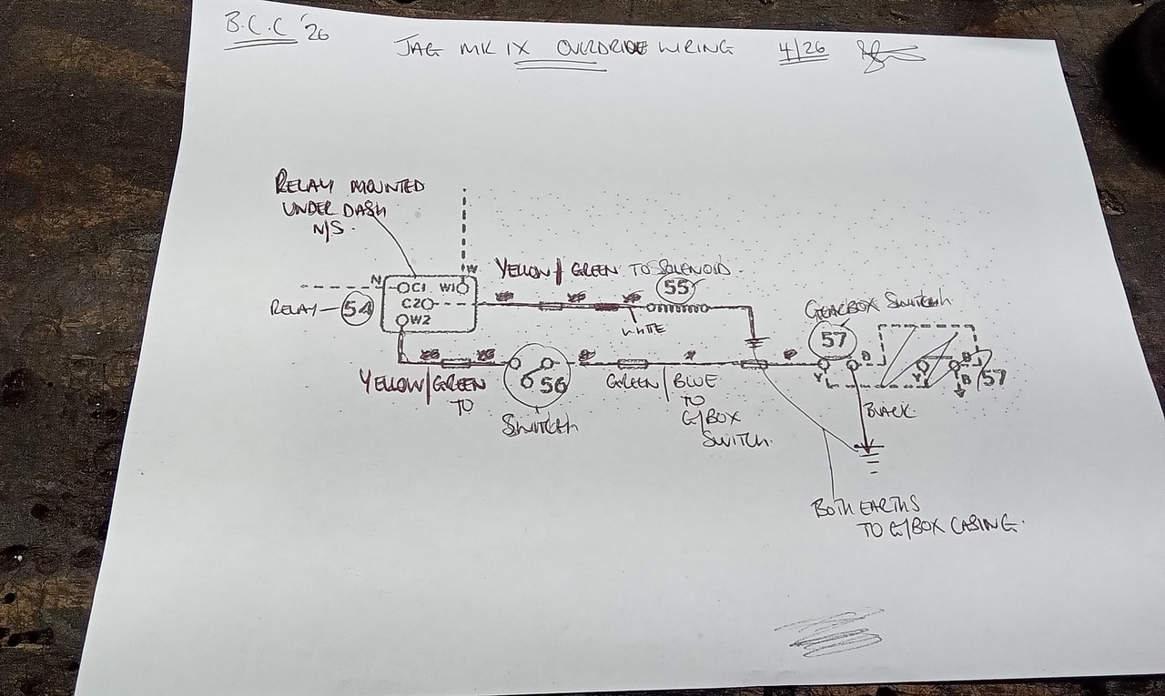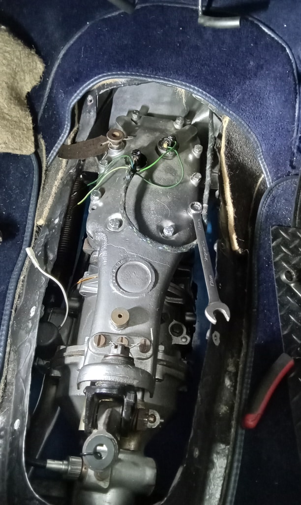 ‘Fill gearbox with new oil. Get new overdrive loom and parts supplied with the car out and check what we have. Remove overdrive switch from inside car. Check online for wiring diagram to assist.’