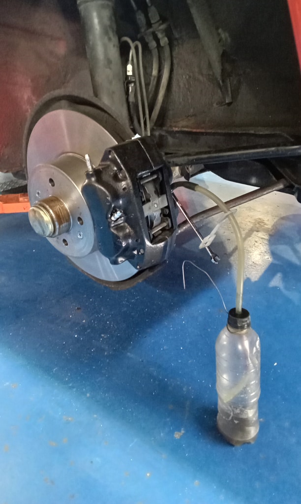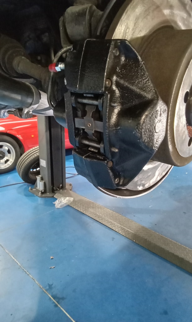Jon has been working his way through the driveline of the car beginning with the rear brakes. The team had ordered a pair of refurbished rear calipers for the car which were fitted to the car along with the new pads and discs before the whole system was bled and tested.