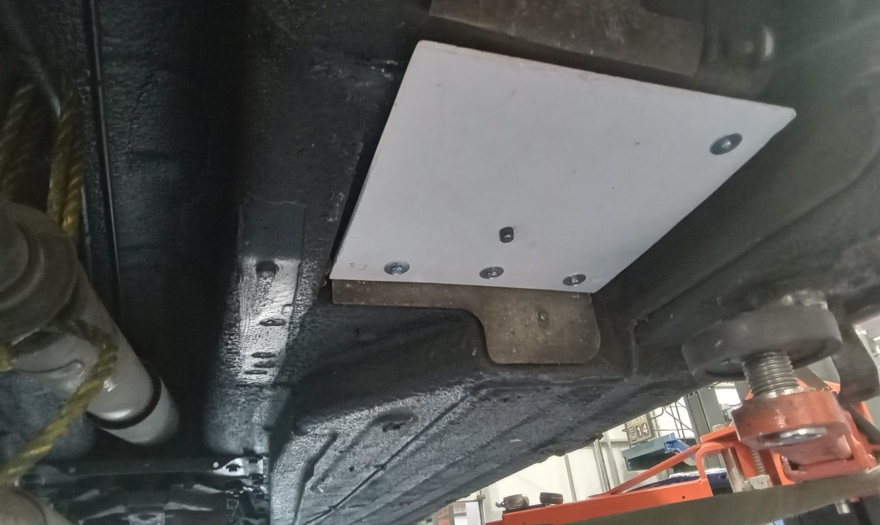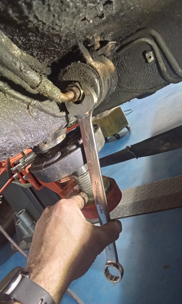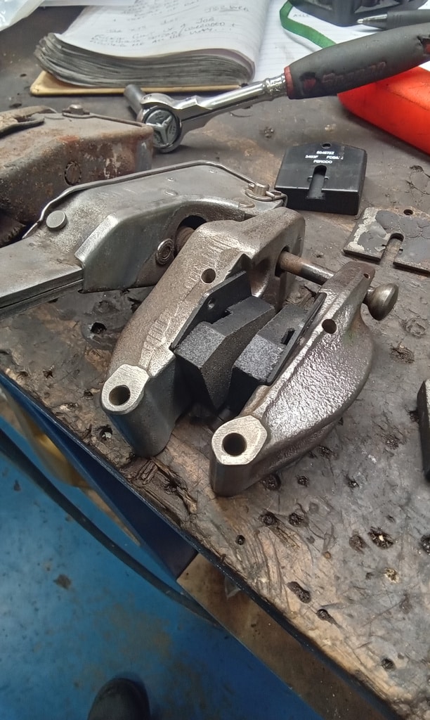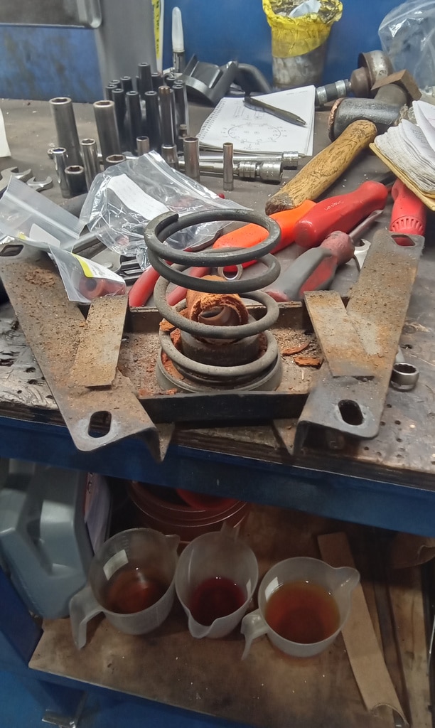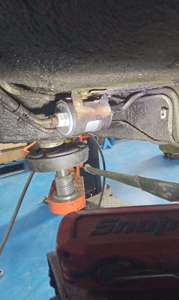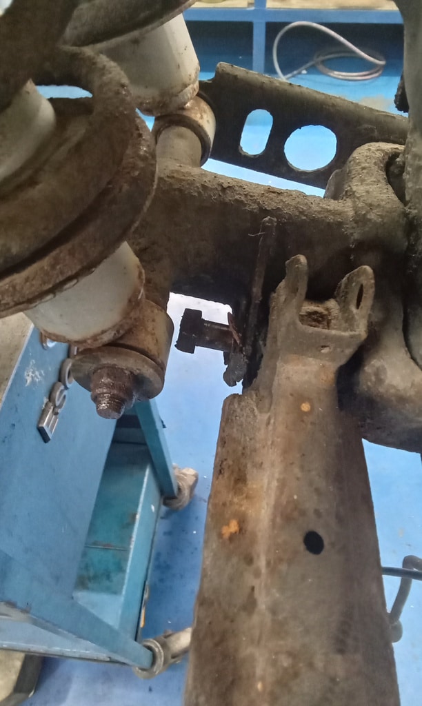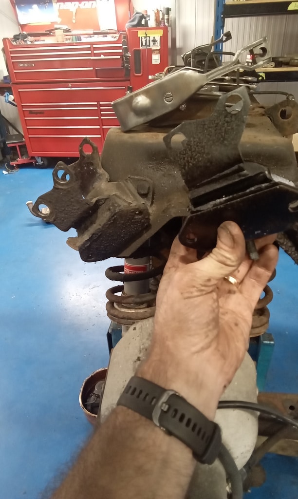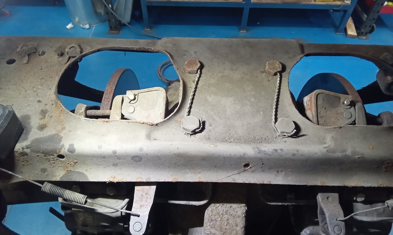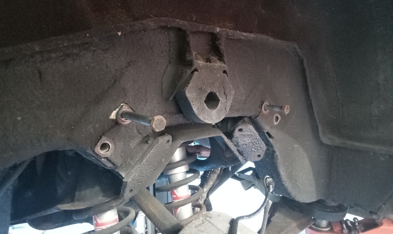 Strip and fit offside rear axle mount. Strip nearside trailing arm and press out old and press in new bush Clean handbrake calipers and all associated parts to be re used. Clean all mounting bolts and find replacement for incorret one fitted to nearside. Strop and remove gearbox mount.”