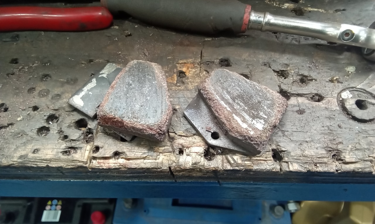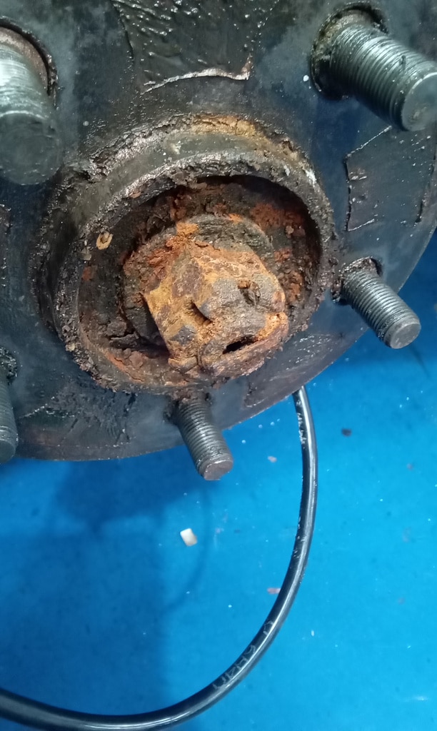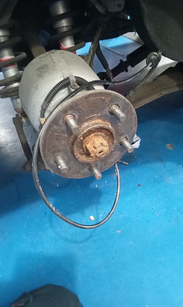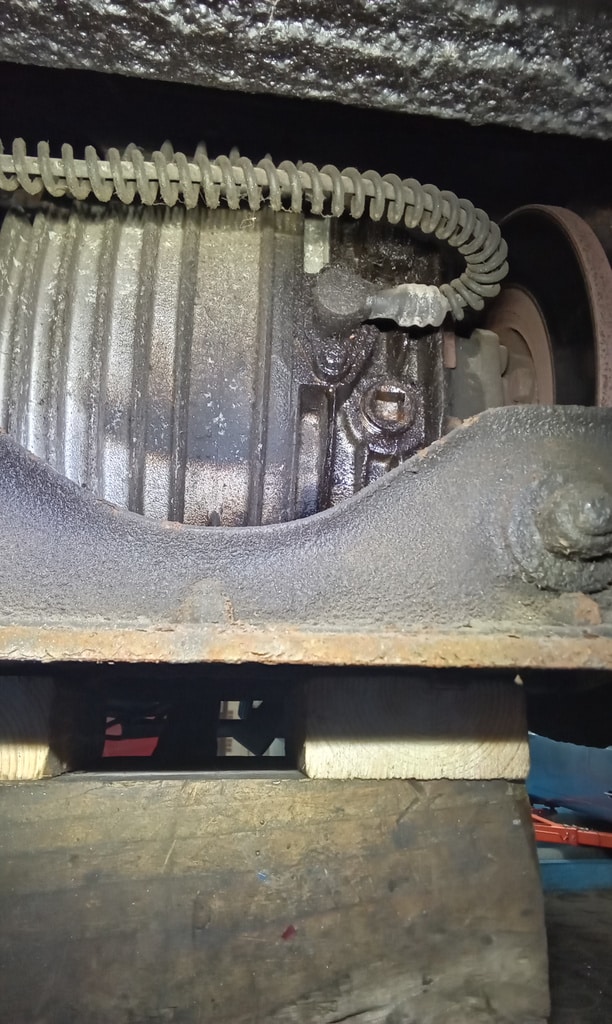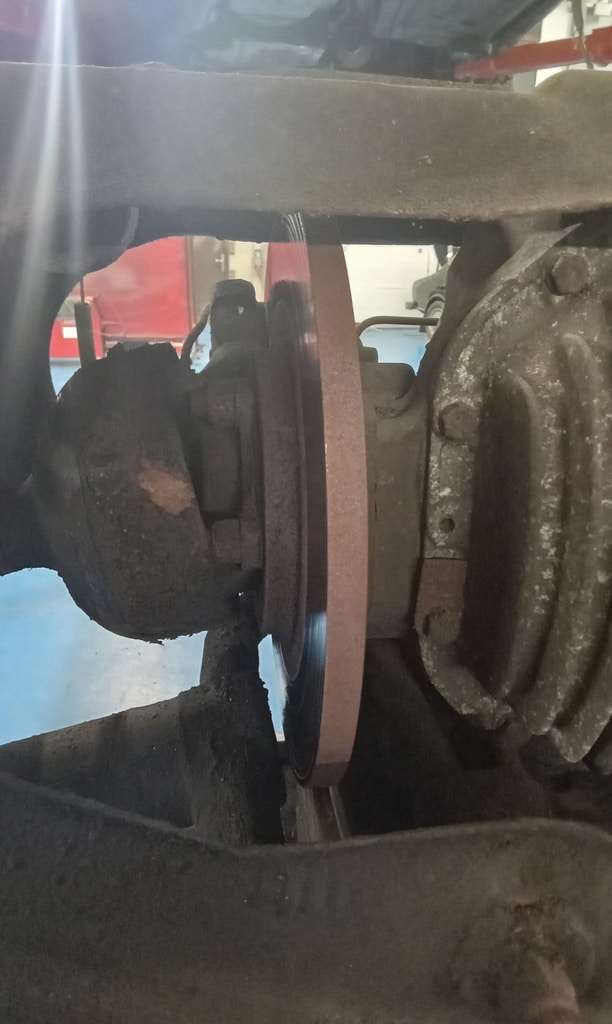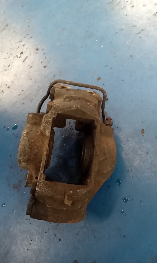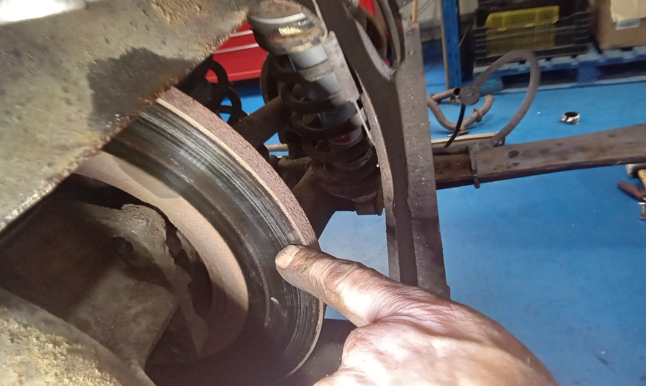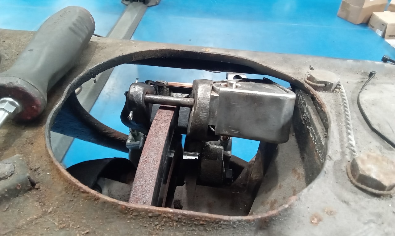 ”Remove rear axle assembly. Strip and remove handbrake calipers. Remove main calipers. Axle now turns freely. Needs new calipers. Start cleaning parts.