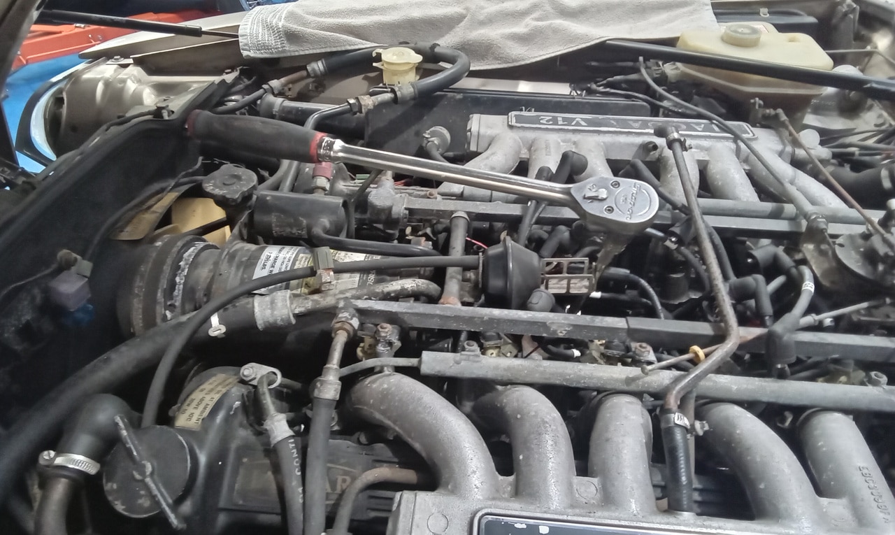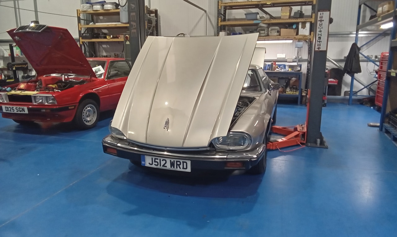 The 1991 Jaguar XJS V12 is in the restoration workshop at our Suffolk HQ for the Bridge Classic Cars team to begin work on after its appraisal. Our technician Jon has been heading up the project on the mechanical side of things – carrying out various repairs in the Bridge Classic Cars workshop.