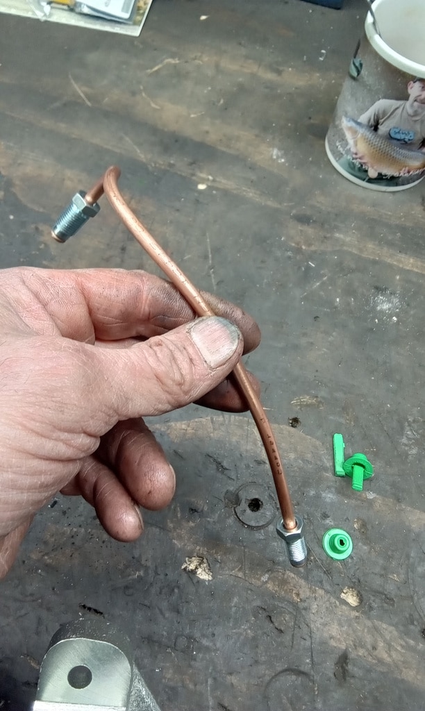 Fill with new oil. Rear axle. Fit new calipers. Bend new brake pipes to fit calipers. Fit handbrake calipers and lube pins. Adjust linkages and fit split pins. Fit new rear service brake pads. Fit easi bleed to nearside caliper and drill and fix to frame.