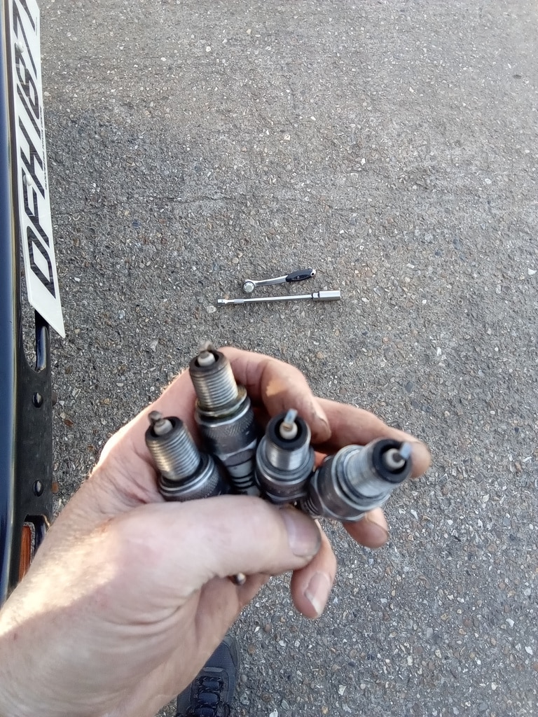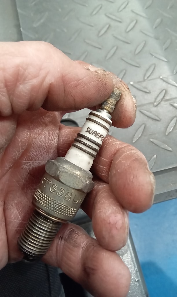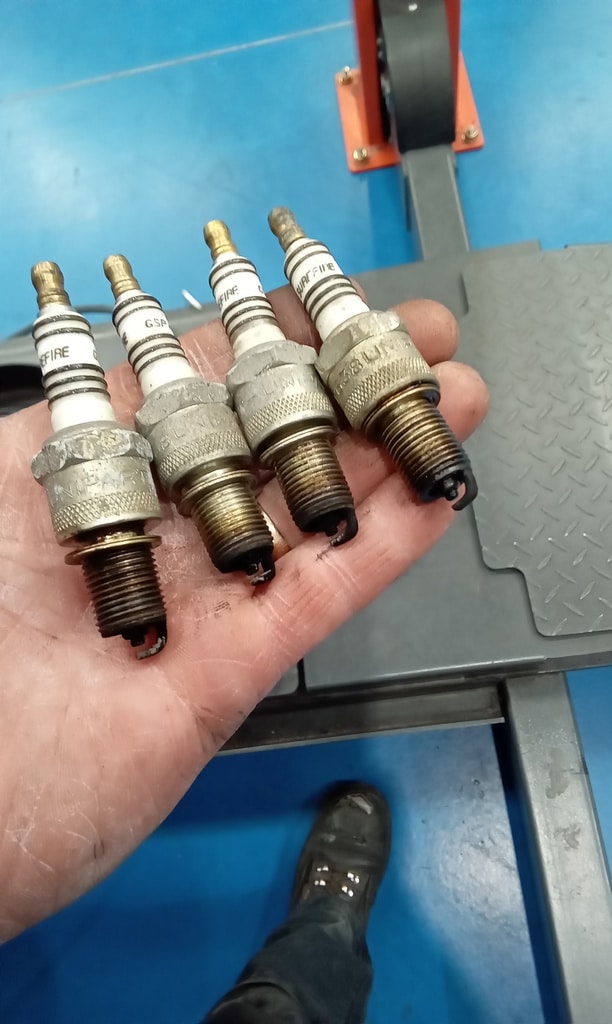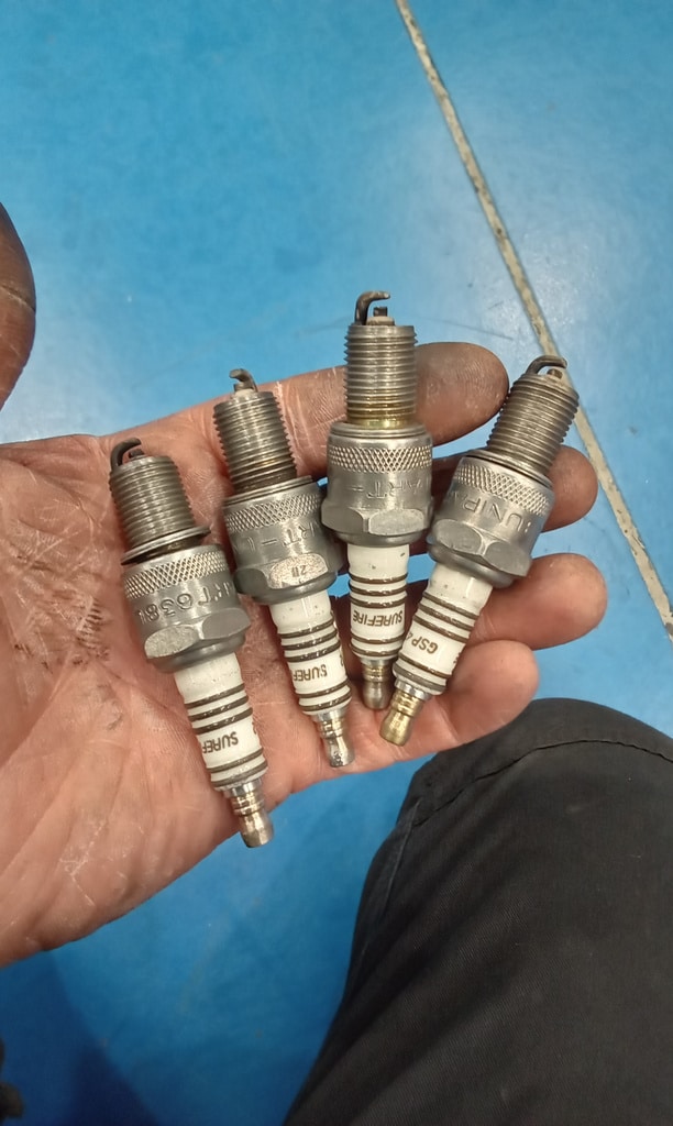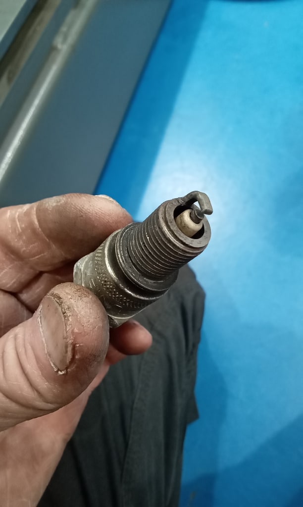 ”Get on ramp and painful tank. Disconnect fuel line from pre filter and blow back to tank. Removeair filter. Disconnect pipe from pump to carb and also blow out. Reconnect pipes to filterand pump. Remove distributor cap and check points. Clean rotor arm and oil cam. Refit cap. Remove spark plugs. Clean and regap to 0.8mm and tighten top caps. Refit and connect Ht leads. Reconnect pipe at carb. Put 10 ltrs E5 petrol in. Jump start and check exhaust. Centre silencer holed and blowing. Order new battery and exhaust and wait until replaced to check running etc.”
