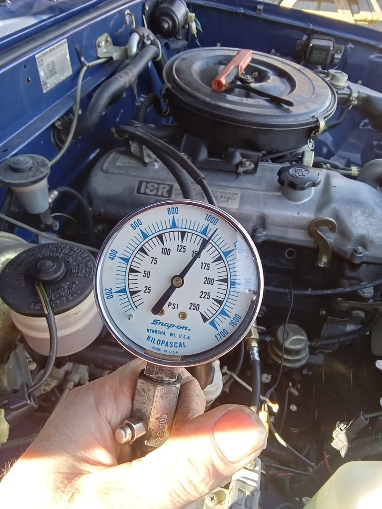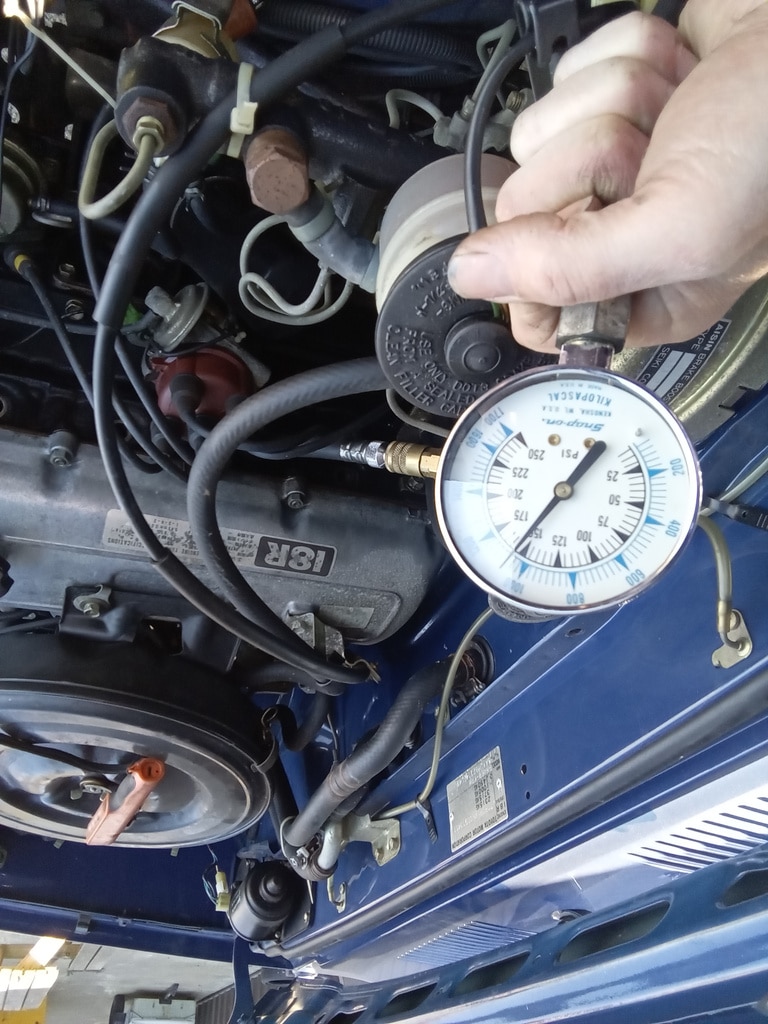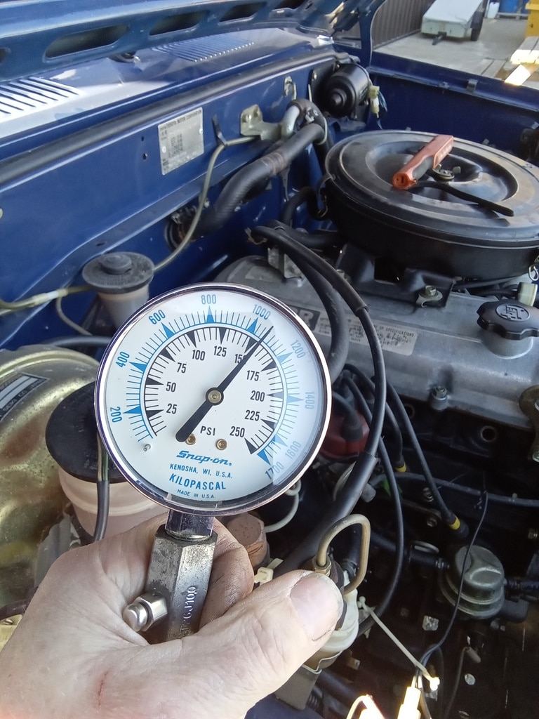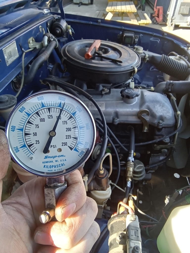 Then, our technician Steve could take the pickup outside and carry out a compression test to make sure the 4-cylinder was in good health – with all cylinders showing 150psi.