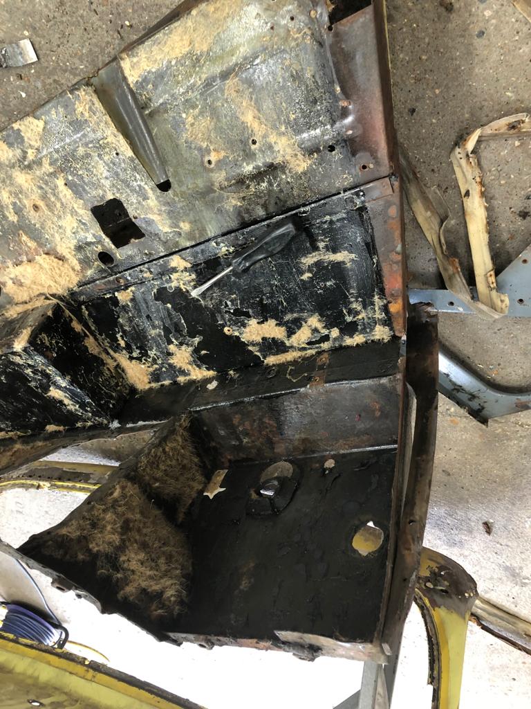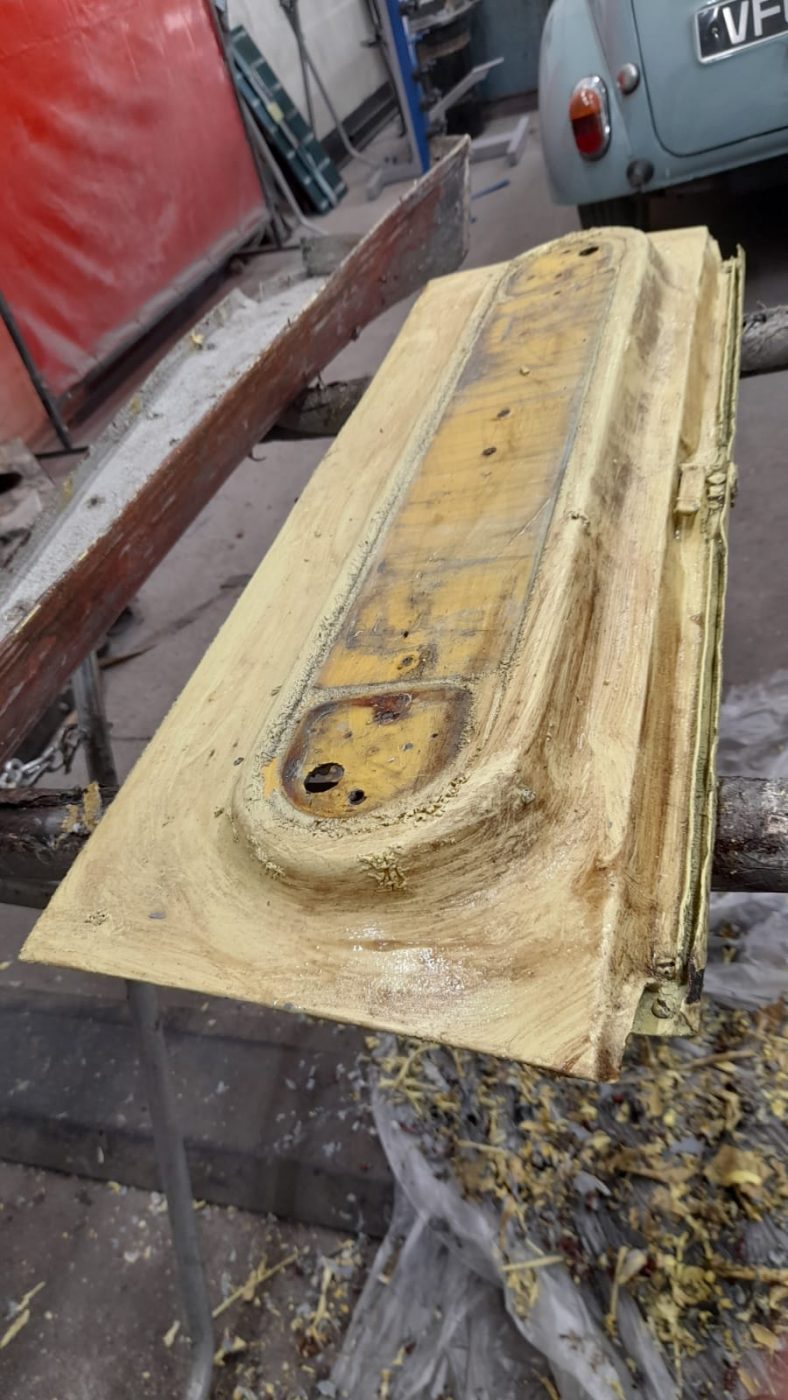 James has been working to dismantle our yellow 1951 Riley and fabricate a new vent panel.